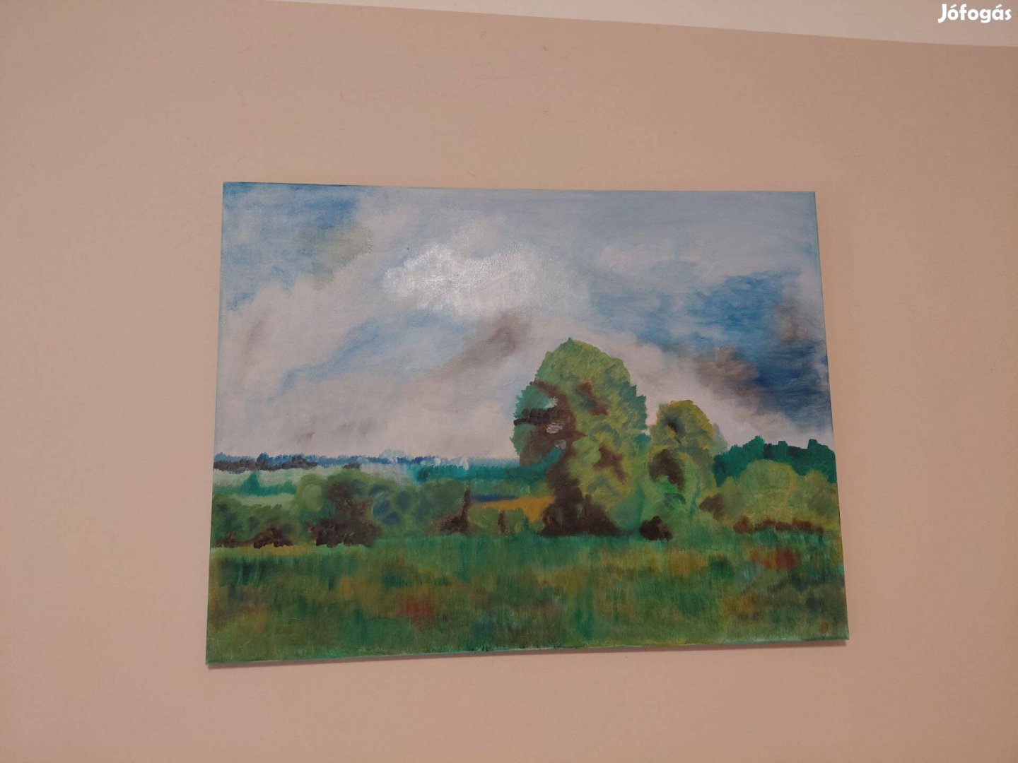 Olajfestmény vásznon a címe :vihar elött. Kézzel festet keret nélkül. A mérete 80x60cm.