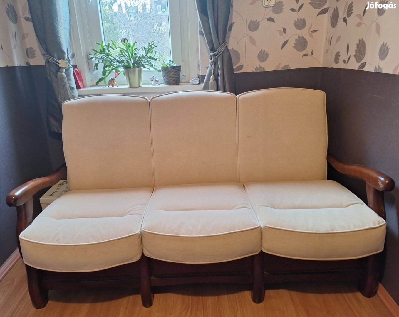 Olasz kihúzható kanapé eladó Bp.XII.Ker.ben.Mahagóni fabetét,beige plüss kárpitozás.Kiváló állapotú, vendégágyként ritkán használt-stílusváltás miatt eladó.Tel: