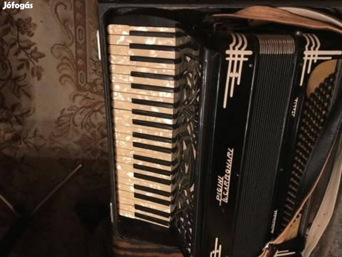 Eladó a képen látható Pigini Carbonari Super King típusú, 120 basszusos, müzettes tangóharmonika, újszerű karcmentes állapotban! Jobboldalon csuklóváltóval, 2 hangszínnel, baloldalt 2 váltóval, tokjával. Súlya csak 9 kg. 1970-től a hangszer fénykorától készül napjainkig.