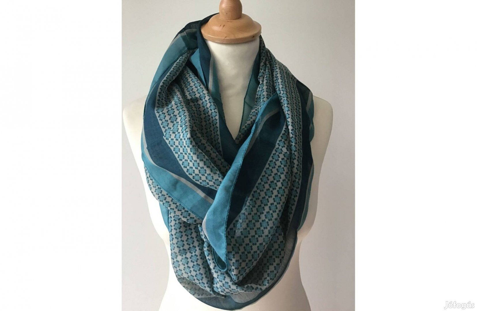 Kék, mintás körsál, kendő.