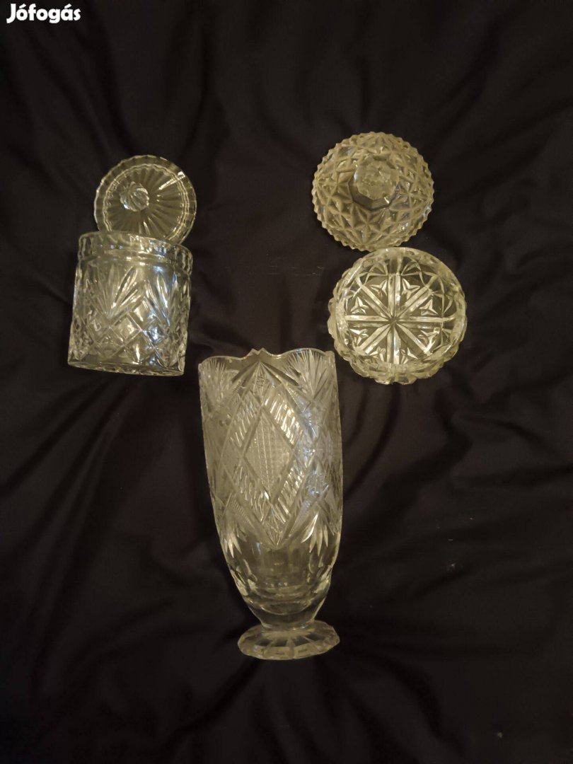 Eladók a képen látható ólomkristály váza és két bonbonier, hibátlan, szép állapotban!