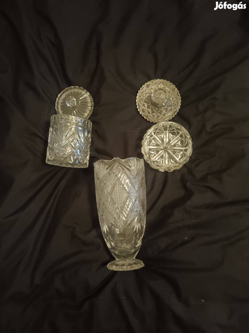 Eladók a képen látható ólomkristály váza és két bonbonier, hibátlan, szép állapotban!
