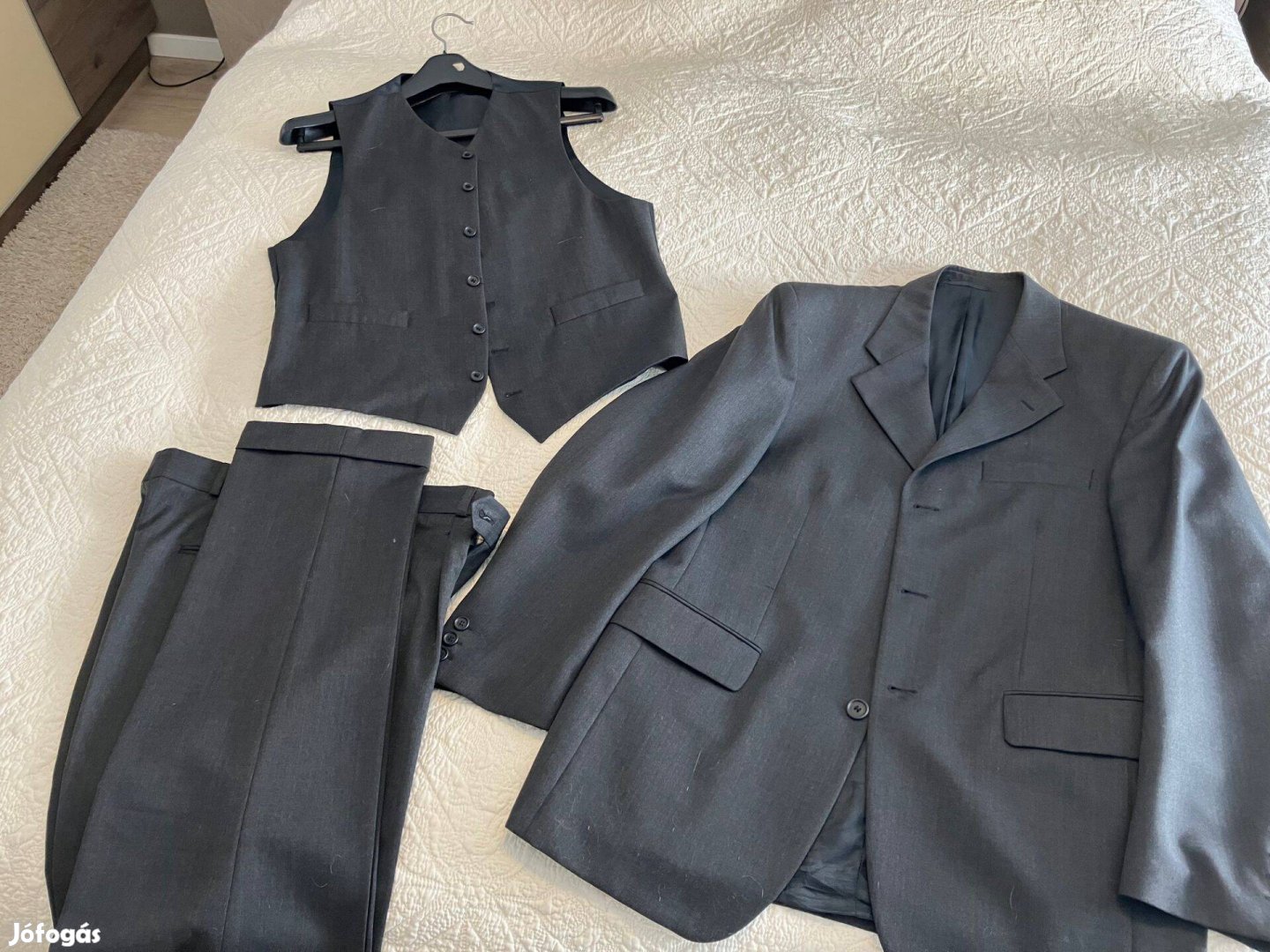 Újszerű elegáns 3 részes 48-as méretű öltöny 9000 forintért eladó.