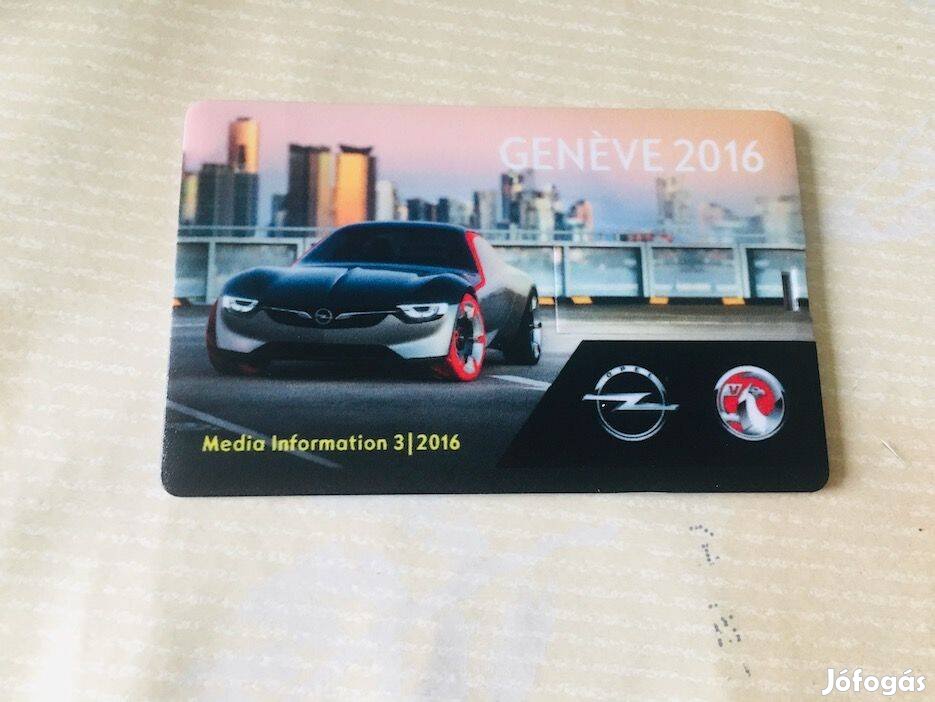 A német Opel autógyár kihajtható USB 2.0 bankkártya formájú lap pendrive-ja. Többféle kiadásban, verzióban. A mérete 4 GB-os, rajta szöveges anyagok, fotók, videók, technikai adatok az Opel modelljeiről. Eredeti gyári termék.