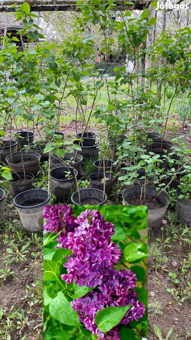 Eladó lila orgona csemete konténeres kiszerelésben. A növény egészséges, dús lombozatú, a mellékelt fotón látható a virágzása is. Mivel konténerben van, nem kell kiásni, bármikor könnyen szállítható és elültethető. Tavasszal gyönyörű és illatos virágokat hoz, ideális választás bármilyen kertbe.
