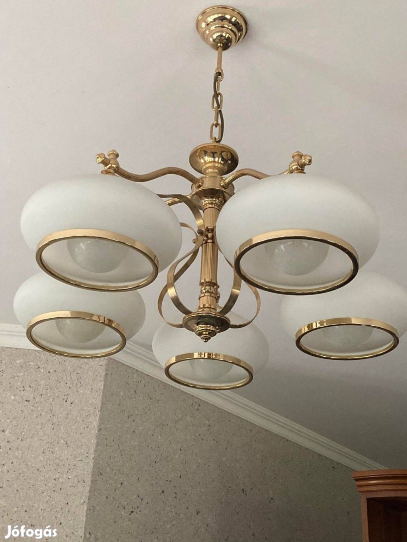 Eladó Orion Molecz Empire exkluzív 5 ágú csillár nagyon szép állapotban. Sárgaréz lámpatesttel, vastag matt opál búrával. Átmérője 90 cm. Keressen bátran, ha elegáns, luxus lámpát szeretne.