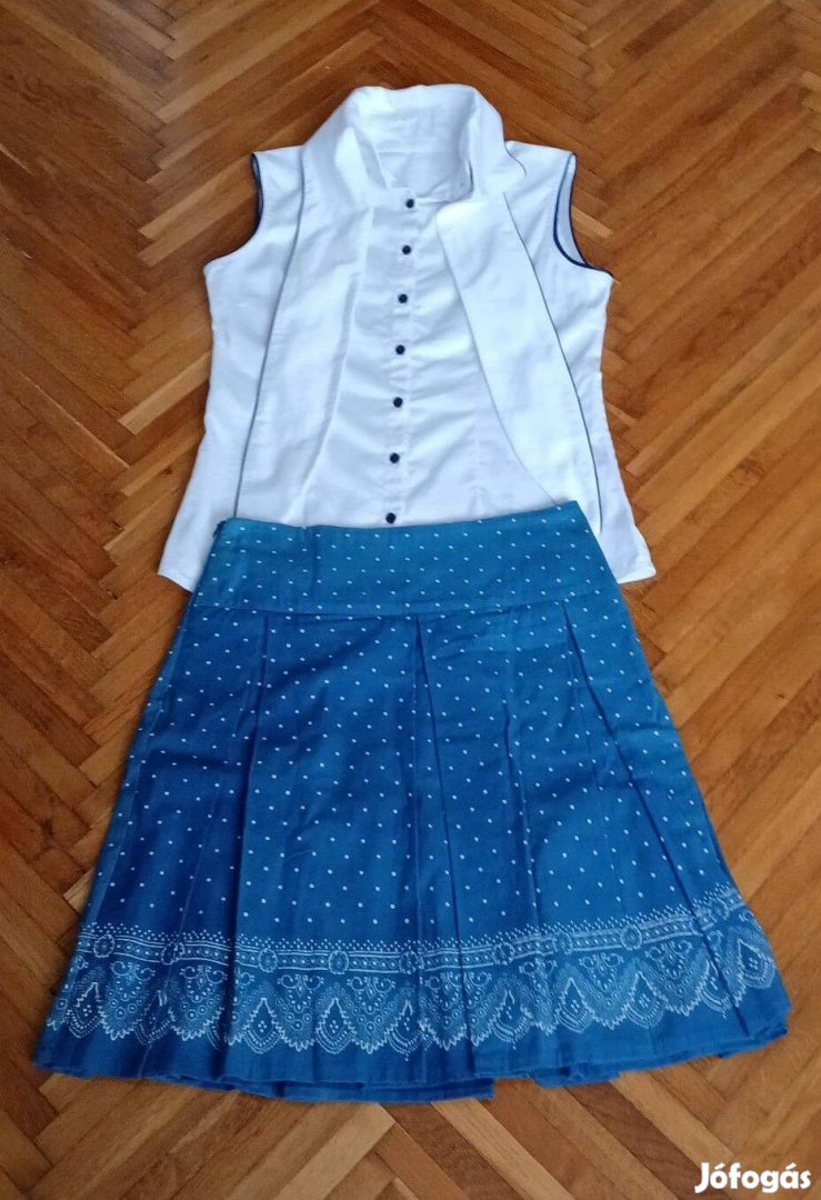 Eladó a képen látható Örökkék női fehér blúz és szoknya szettben.