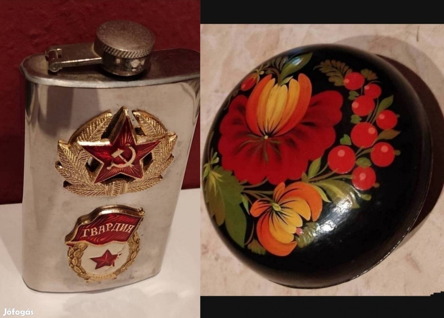 Orosz dísztárgyak, rozsdamentes flaska, kézzel festett doboz 2500-ft/db