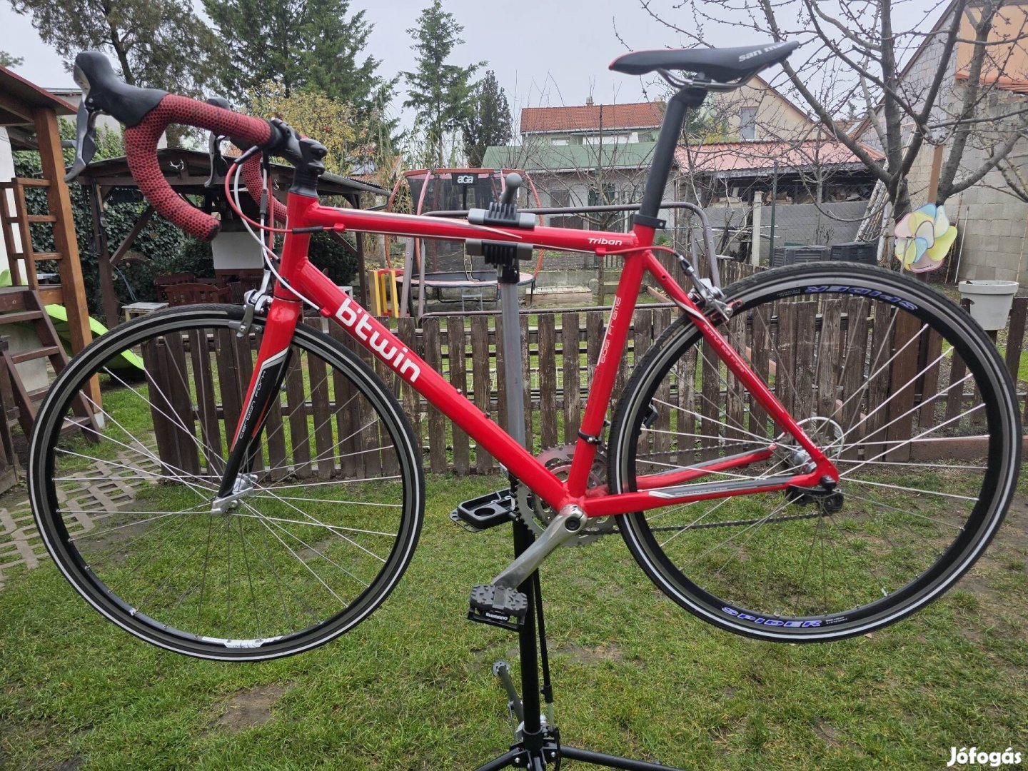 Váz: Sloping 57-es B'Twin Triban (piros, alumínium, karbon villa).