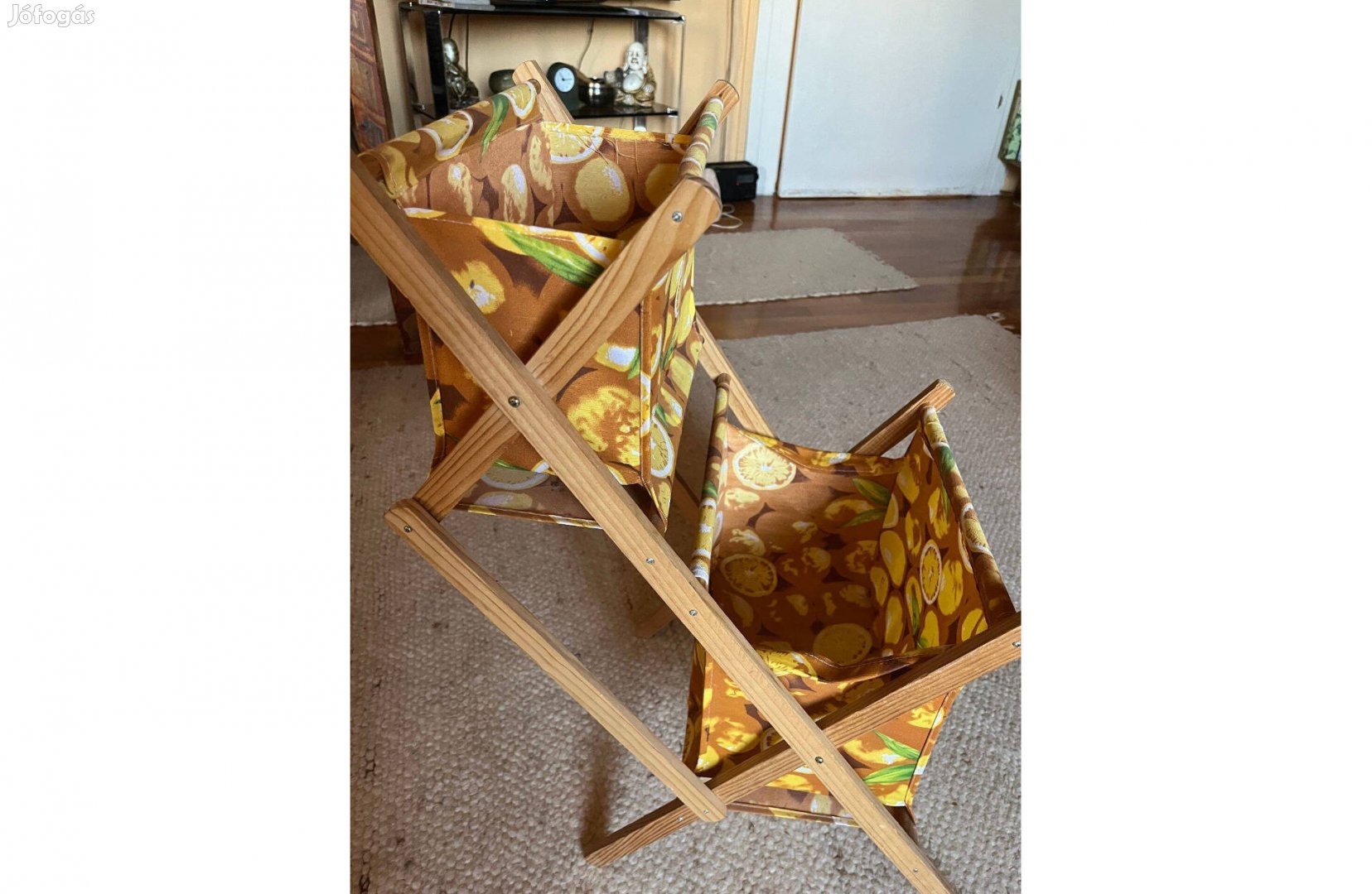 Összecsukható vászon tároló . Játékok, zöldség, stb. Egyik oldalán, varrásnál kb 1 cm pici eleresztés van. Praktikus és mutatós.