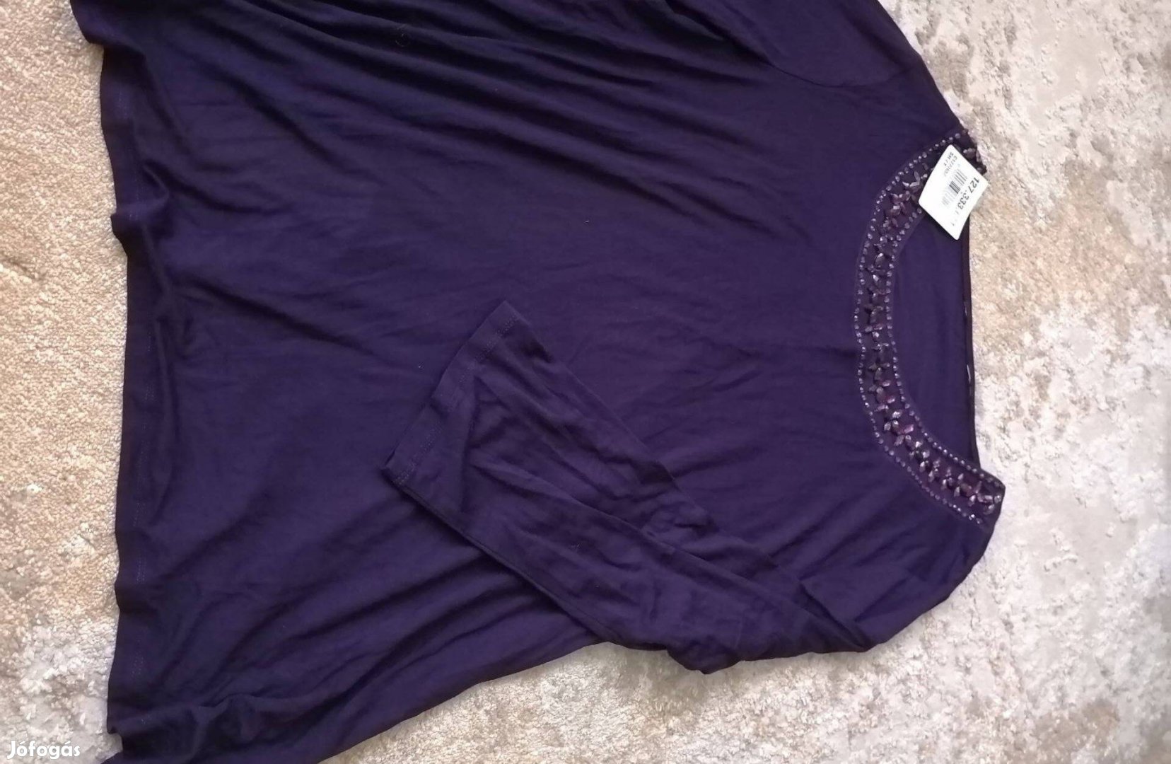Lila női felső háromnegyedes ujjhosszal.