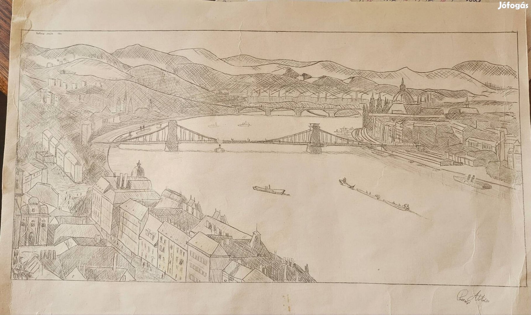 Pallagi Ádám (1991-es) alkotása.A grafika Budapestet ábrázolja,középpontjában a Széchenyi lánchíddal.A látkép a Gellért-hegy környékéről tekint a pesti oldal felé.