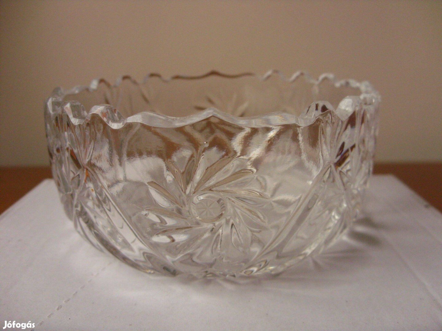 Új, hibátlan. A parádi, szép csengő hangot adó, jellegzetes forgómintás, vastag falú kínáló tálka magassága 5,7 cm, átmérője 12 cm. 0,46 kg. Sós mogyorót vagy más apróságokat is kínálhatunk belőle. Mutatós, értékes dísz- vagy ajándéktárgy.