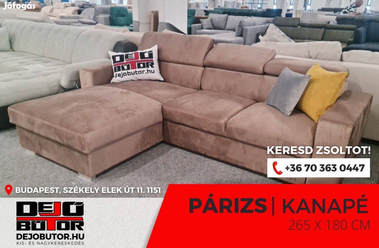 Párizs sarok kanapé rugós ülőgarnitúra 265x180 cm drapp ágyazható ágyneműtartós 430.000 Ft