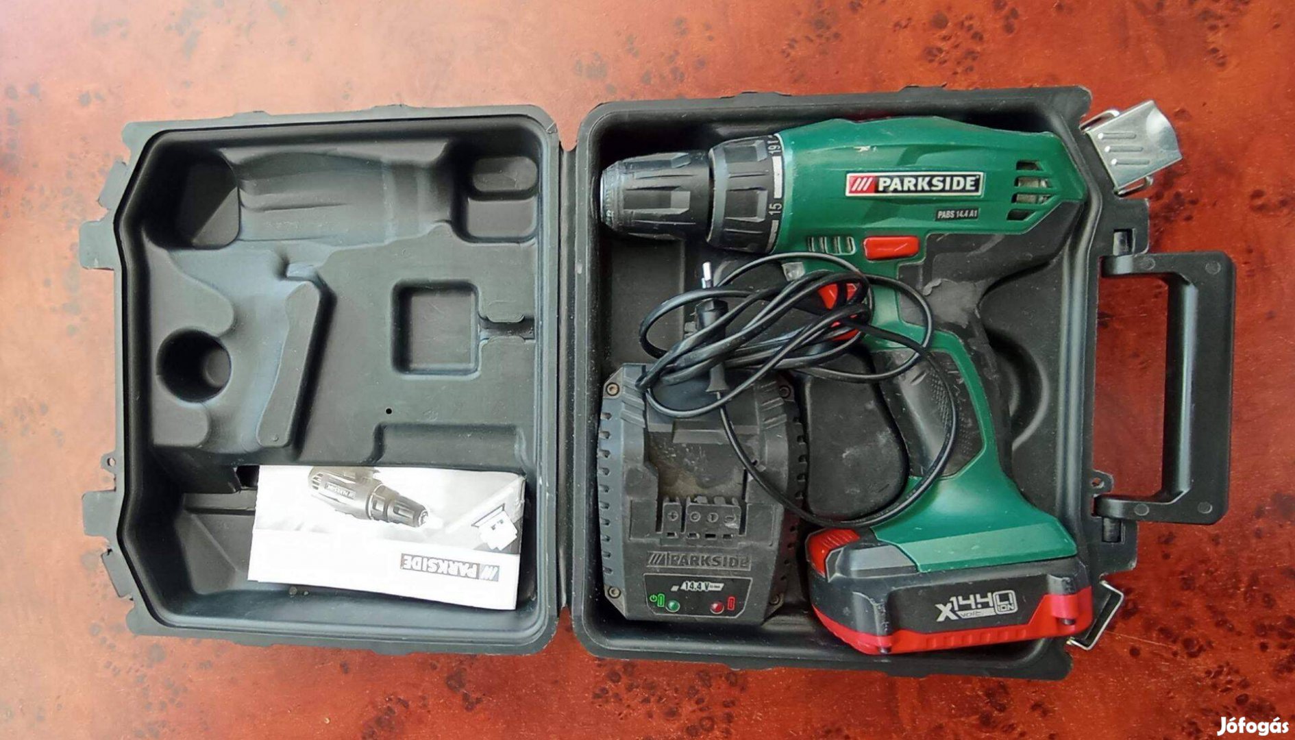 Parkside akkus fúrógép jó állapotban erős akkuval, gyorstöltővel koferrel, és ajándék fúró-csavarozó készlettel eladó.