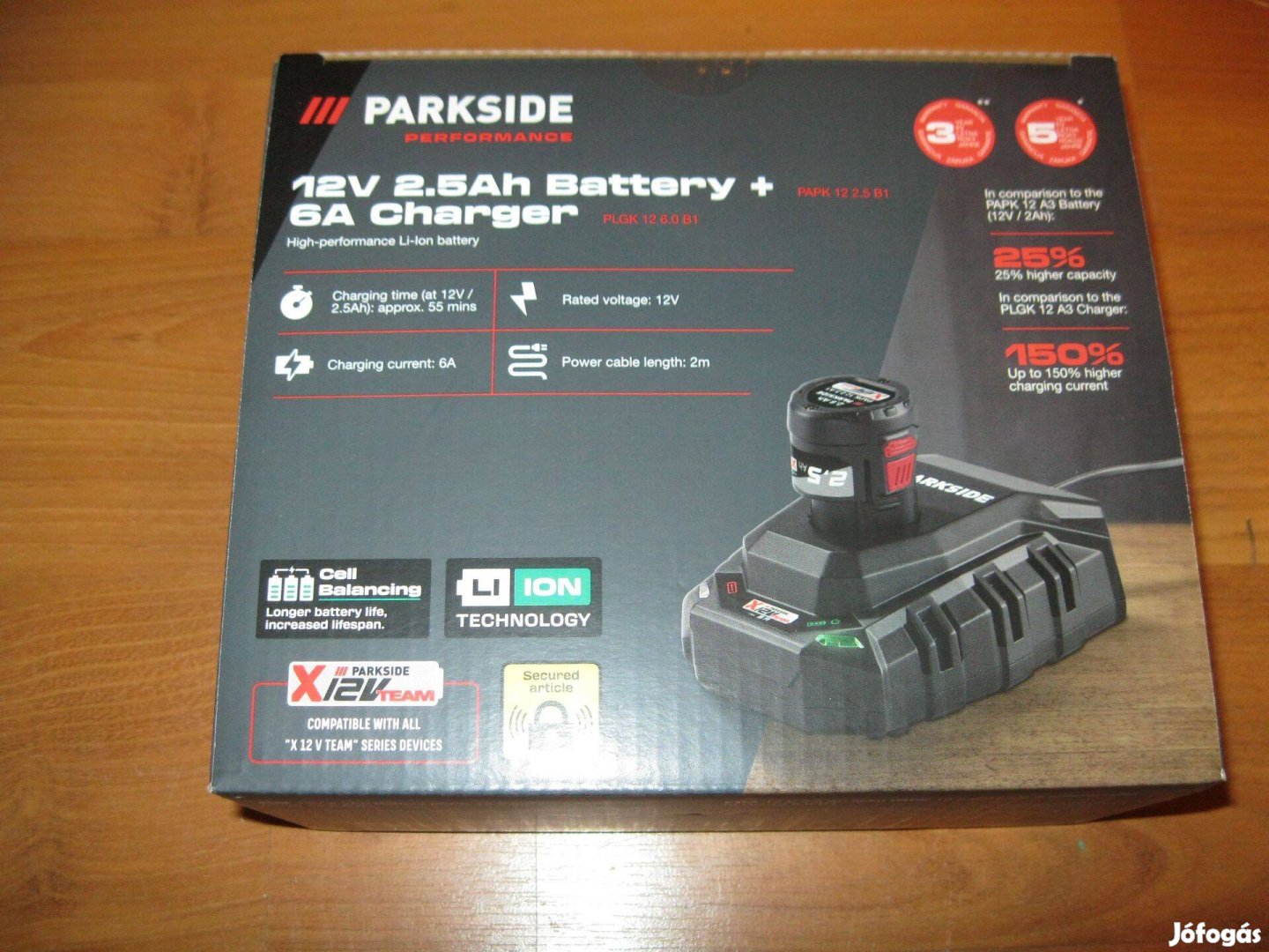 Parkside performance 12V 2,5Ah akkumulátor + 6A töltő szett