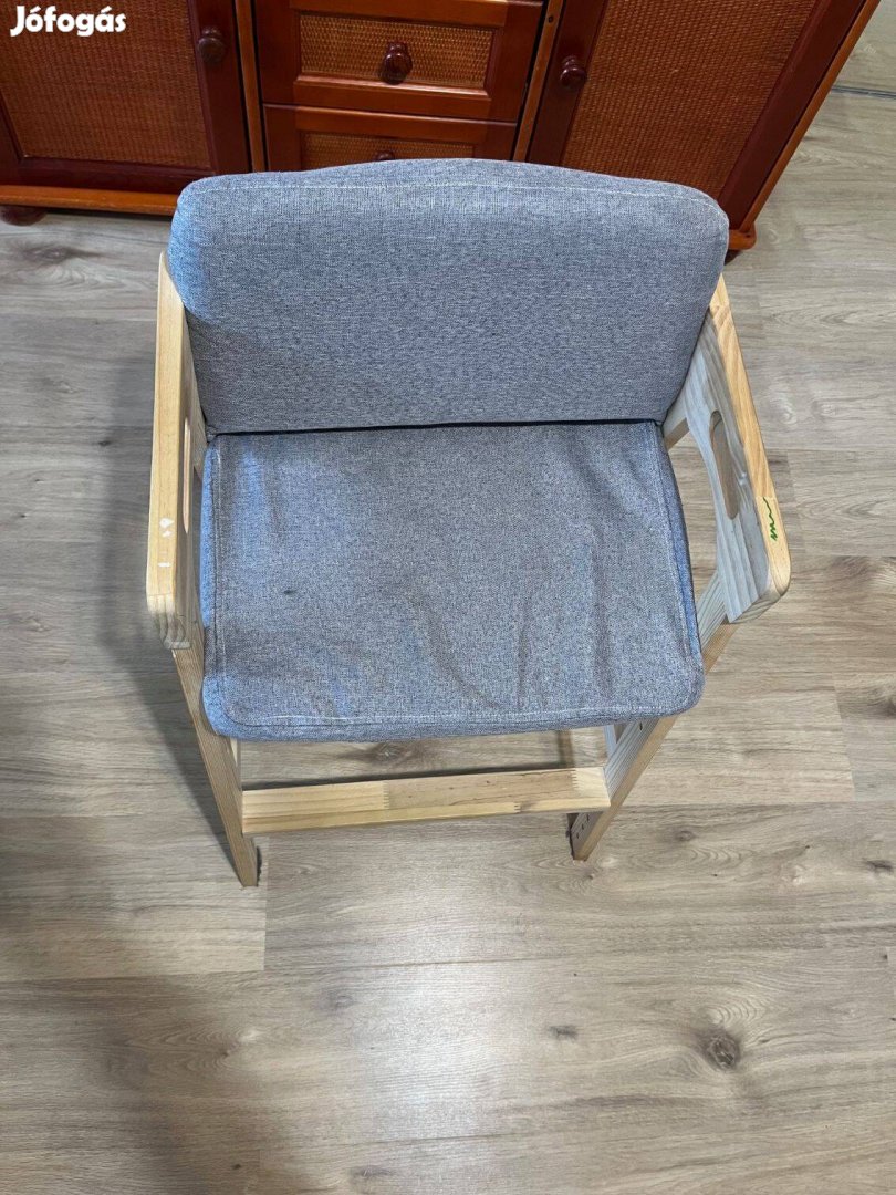 Eladó a képen látható állapotban egy párnázott fa magasított gyerekszék. Méretei: 50x50x75 cm, az ülőrész 40x40 cm, a magassága a talajtól mérve 36 - 55 cm magasságban állítható. Szétszerelve adom át, postázást nem vállalok. Átvehető személyesen Dél-Budán.