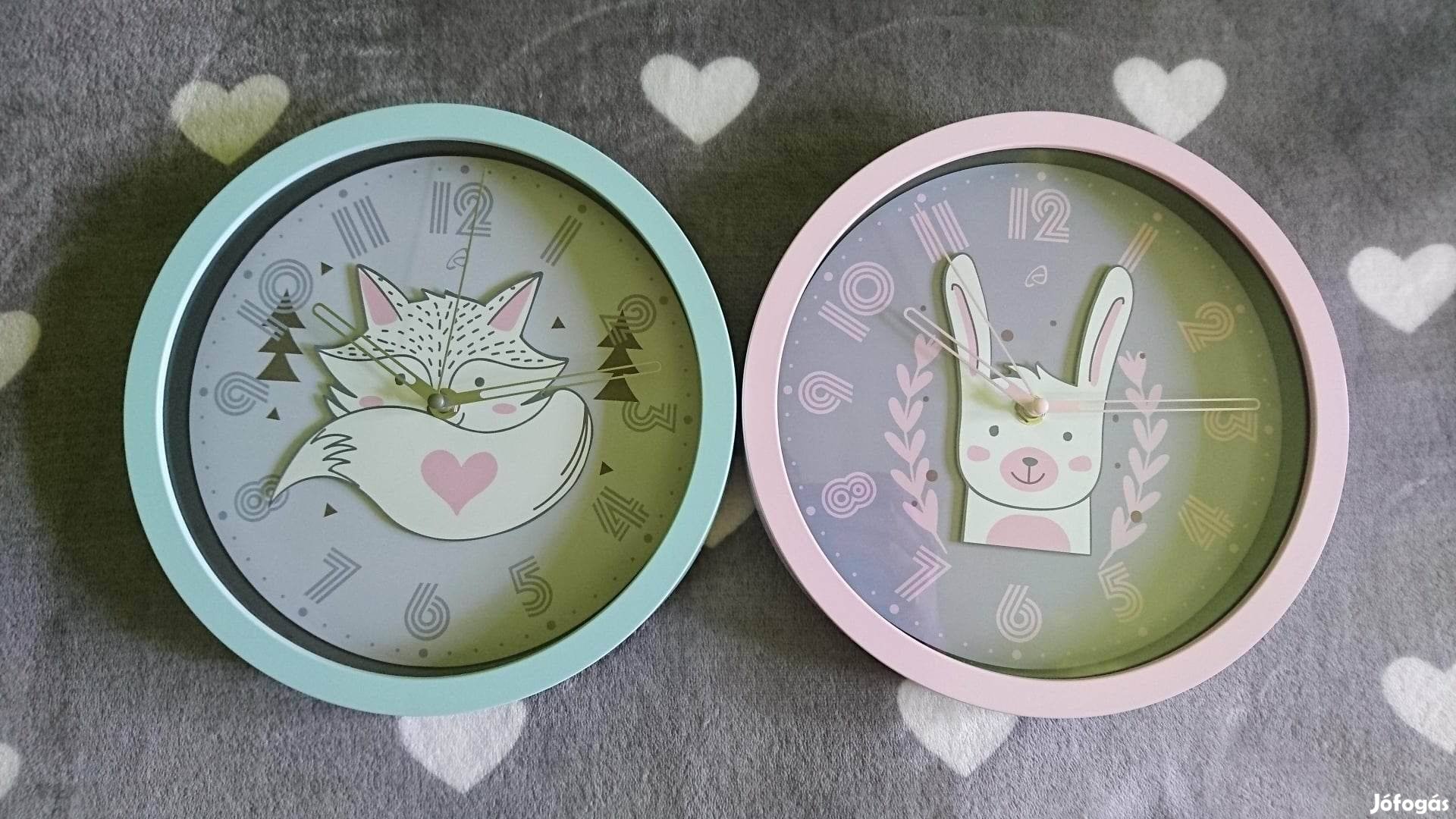 Pasztell kék / rózsaszín falióra / óra / gyerek / nyuszi / róka