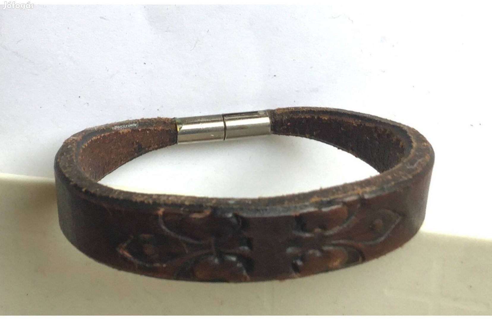 Patinás, bőr karkötő (Bourbon-liliom nyomattal) 17 cm