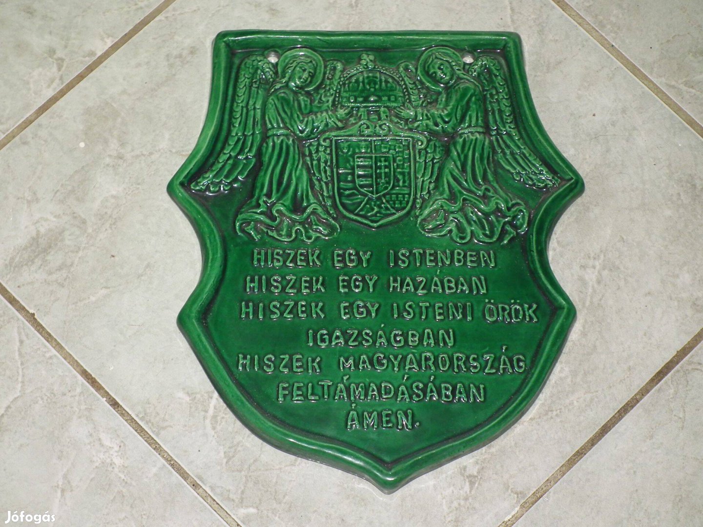 Magyar hiszekegy szép Korondi - Józsa János - kerámia magyar címer 26 x 22 cm.