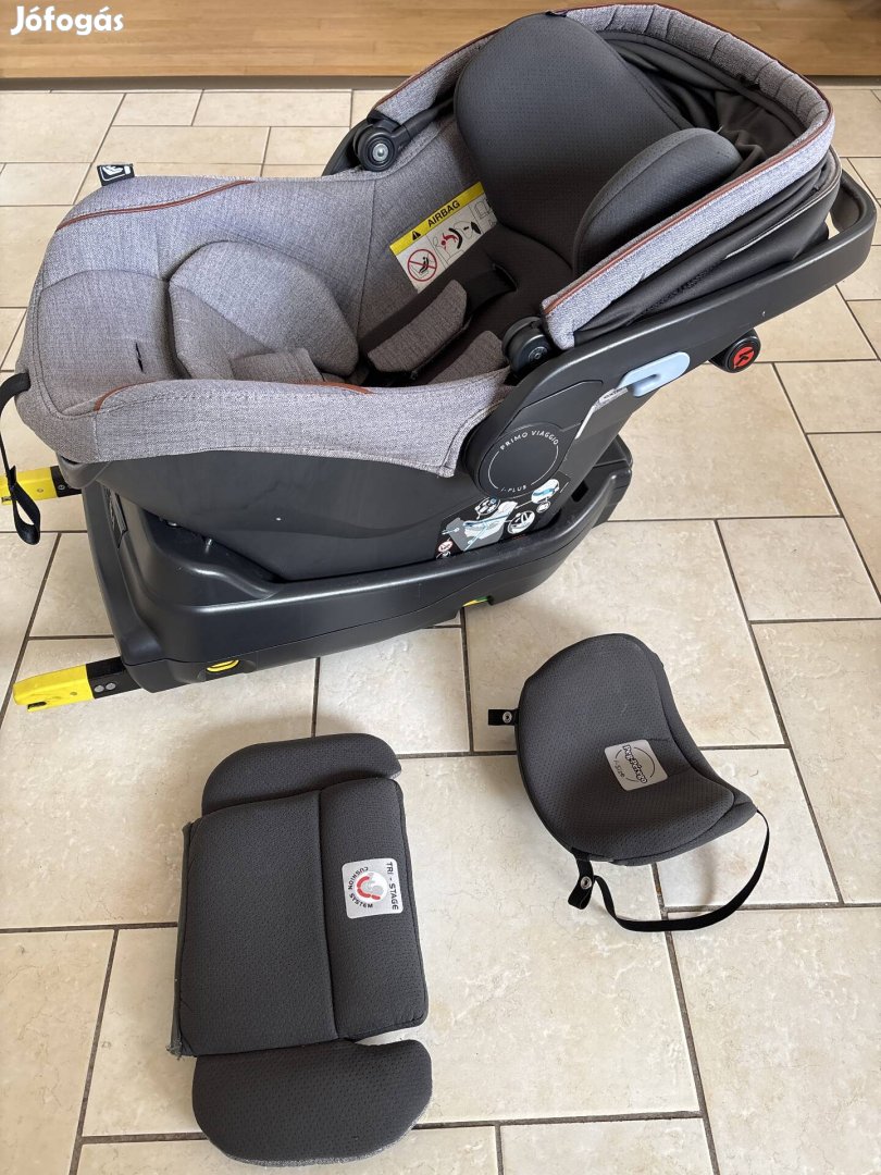 Eladó használt Peg Perego Primo Viaggio i-plus Isofix talp és ülés 13kg-ig, szűkítővel így újszülött kortól használható.