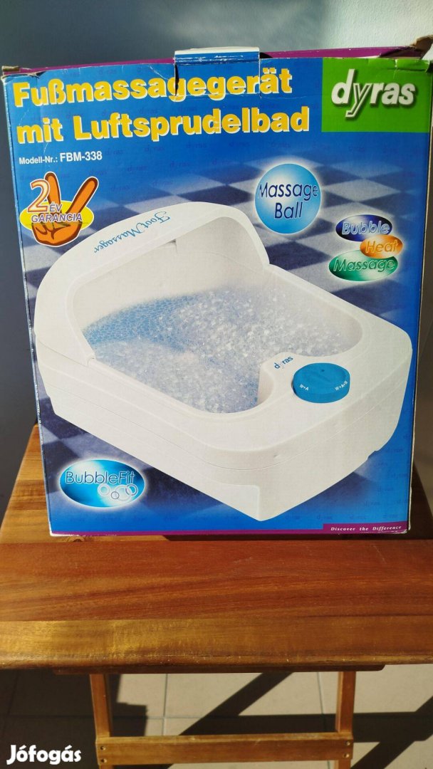 Dyras pezsgő lábmasszírozógép eladó a következő programokkal: pezsgőfürdő, melegítés, vibrációs masszázs, masszázsfejjel.