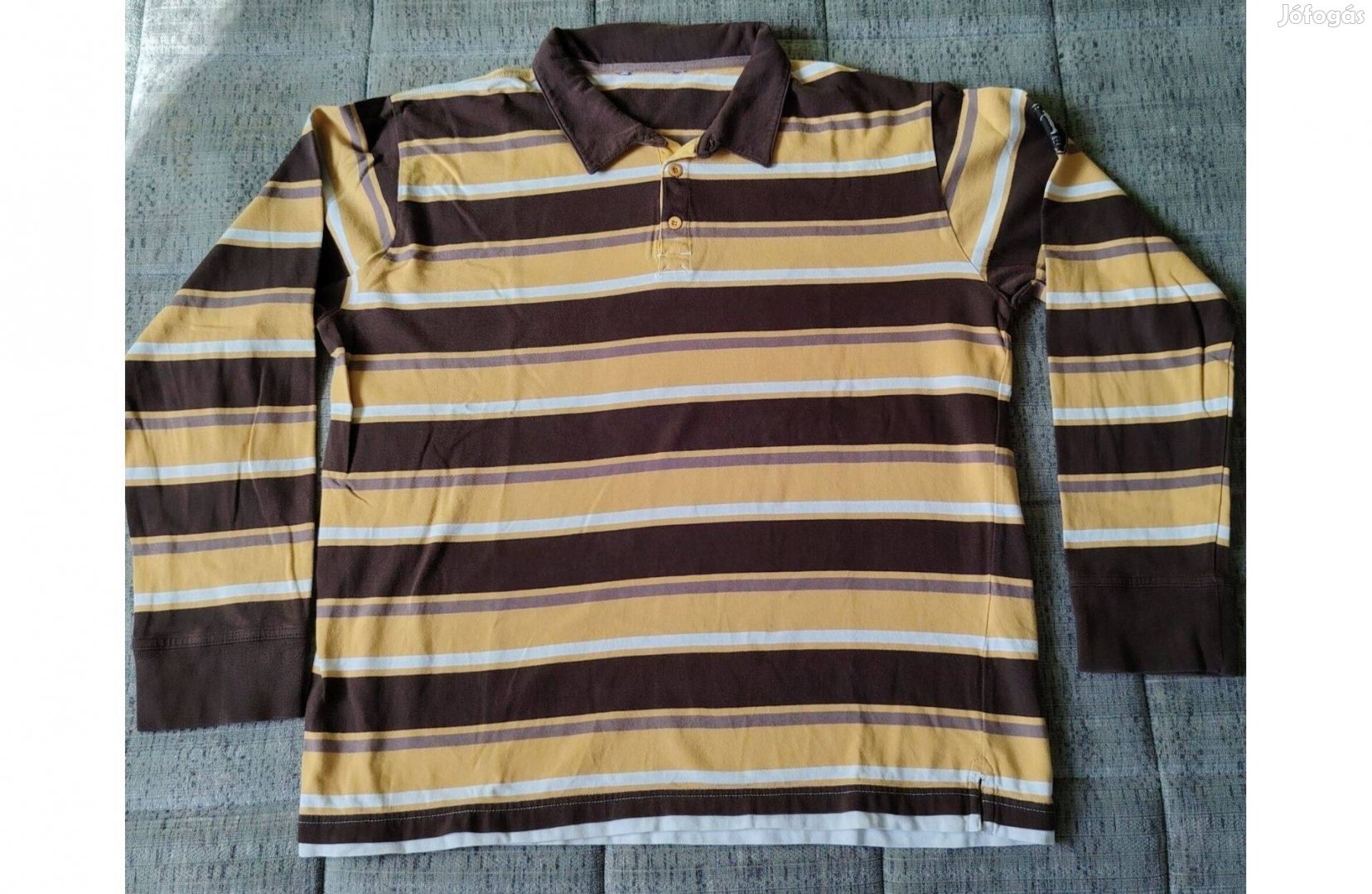 Philip Russel Férfi galléros hosszú ujjú póló XL barna-sárga