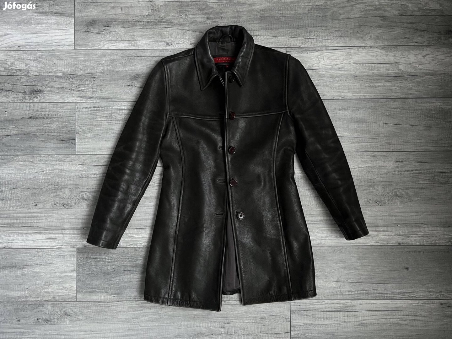 Eladó a képeken látható Philip Russel, sötétbarna, karcsúsított női bőrkabát, M-es méretben, újszerű, kitűnő állapotban.