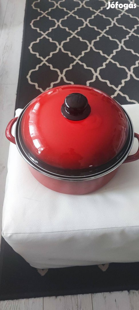 Piros fém fazék lábas fedővel