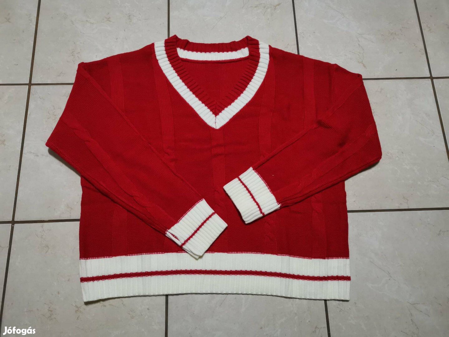 Pirosfehér kötött pulóver XXL Új