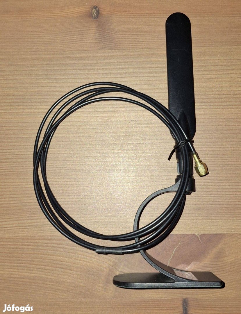 Eladó a fenti hibátlanul működő WiFi-antenna, ami kompatibilis a 802.11a/b/g eszközökkel. Az antenna szöge változtatható, a kb. 1 m-es kábel miatt többféle pozícióba is elhelyezhető. Antennanyeresége 3dBi@ 2,5GHz, illetve 5dBi@5GHz.