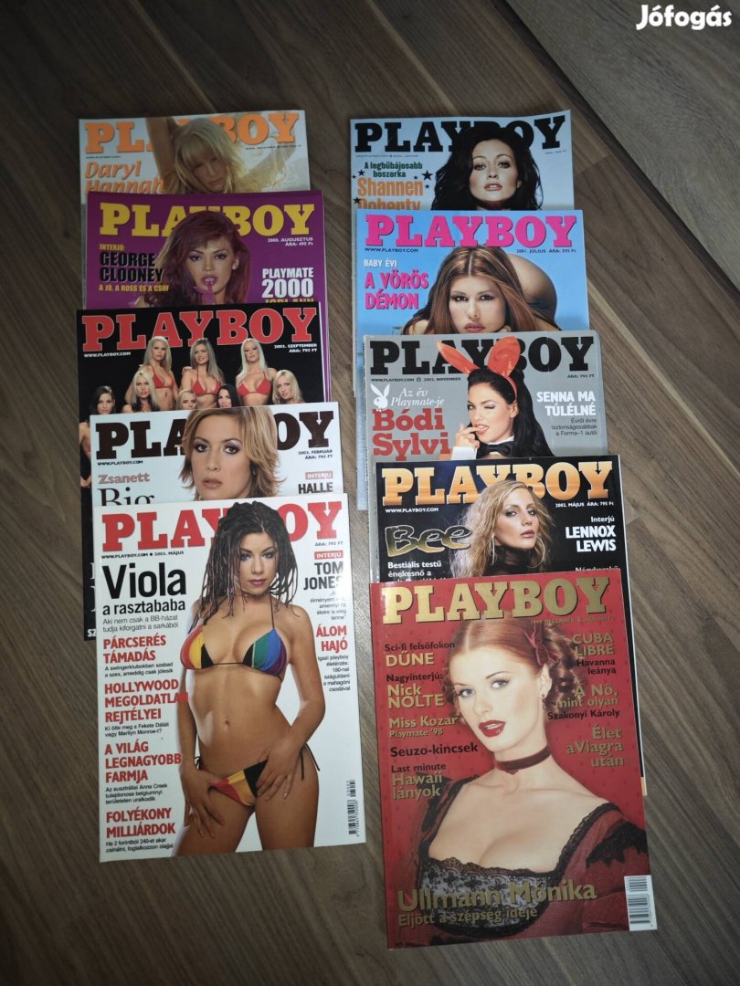 Playboy újságok vegyesen: 2003 december, 2000 augusztus, 2003 szeptember, 2003 február, 2003 május, 2004 január, 2001 július, 2002 május, 2002 november, 1999 december.