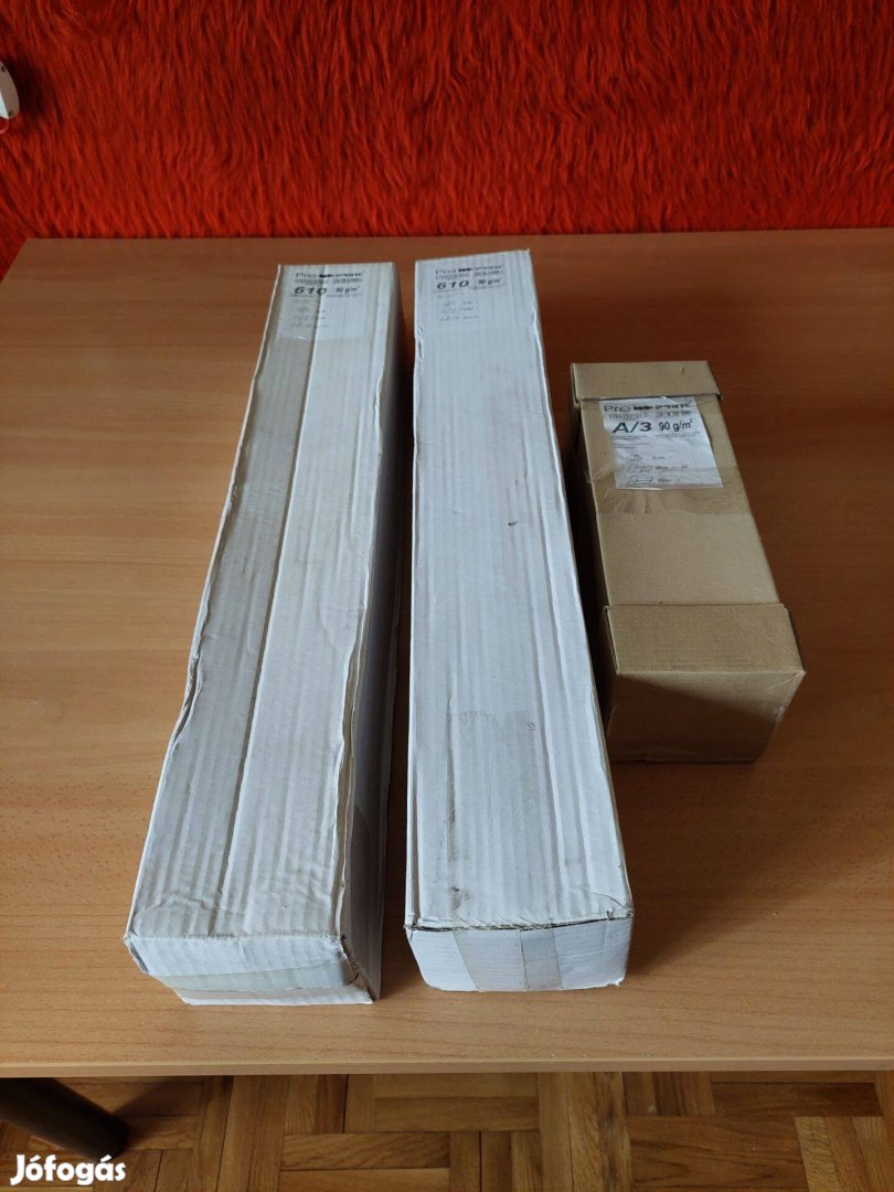 Cégfelszámolásból megmaradt bontatlan A3- és A0-s plotter papírok elvihetők! A terméket magánszemélyként hirdetem, csak megtekintési garanciát tudok vállalni rá. Az ár darabár. A rossz tapasztalatok miatt utánvételt nem vállalok! A termék típusa és a korrekt kapcsolat miatt a személyes átadást preferálom.