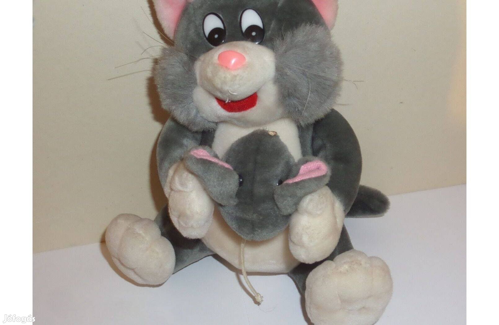 Plüss cica, macska egérrel figura