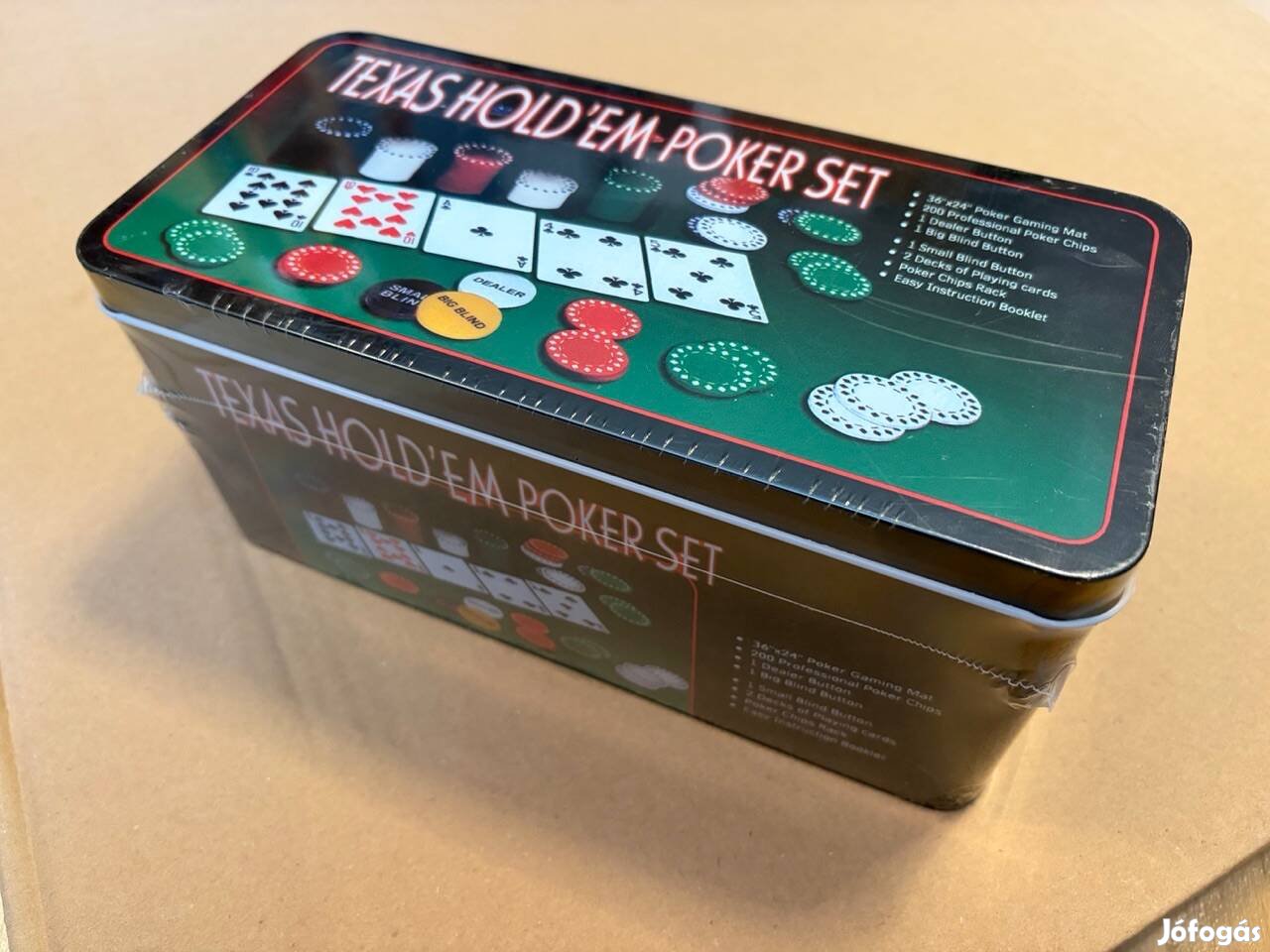 Pókerszett; vadonatúj, még az eredeti műanyag fólia is a dobozon van.