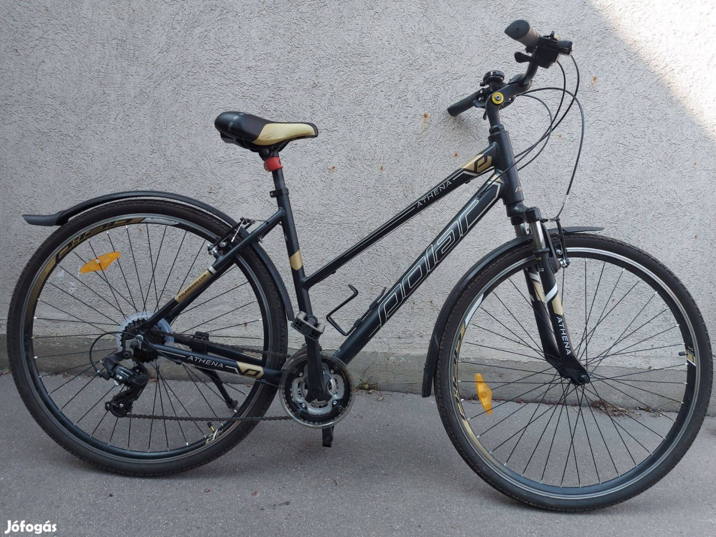 Eladó megkímélt, alig használt Polar Athena aluvázas női trekking. 28 collos kerekek. 3x7 sebességes Shimano Tourney váltó. Teleszkóp. Sárhányóval és kitámasztóval felszerelt. Könnyű és kényelmes.