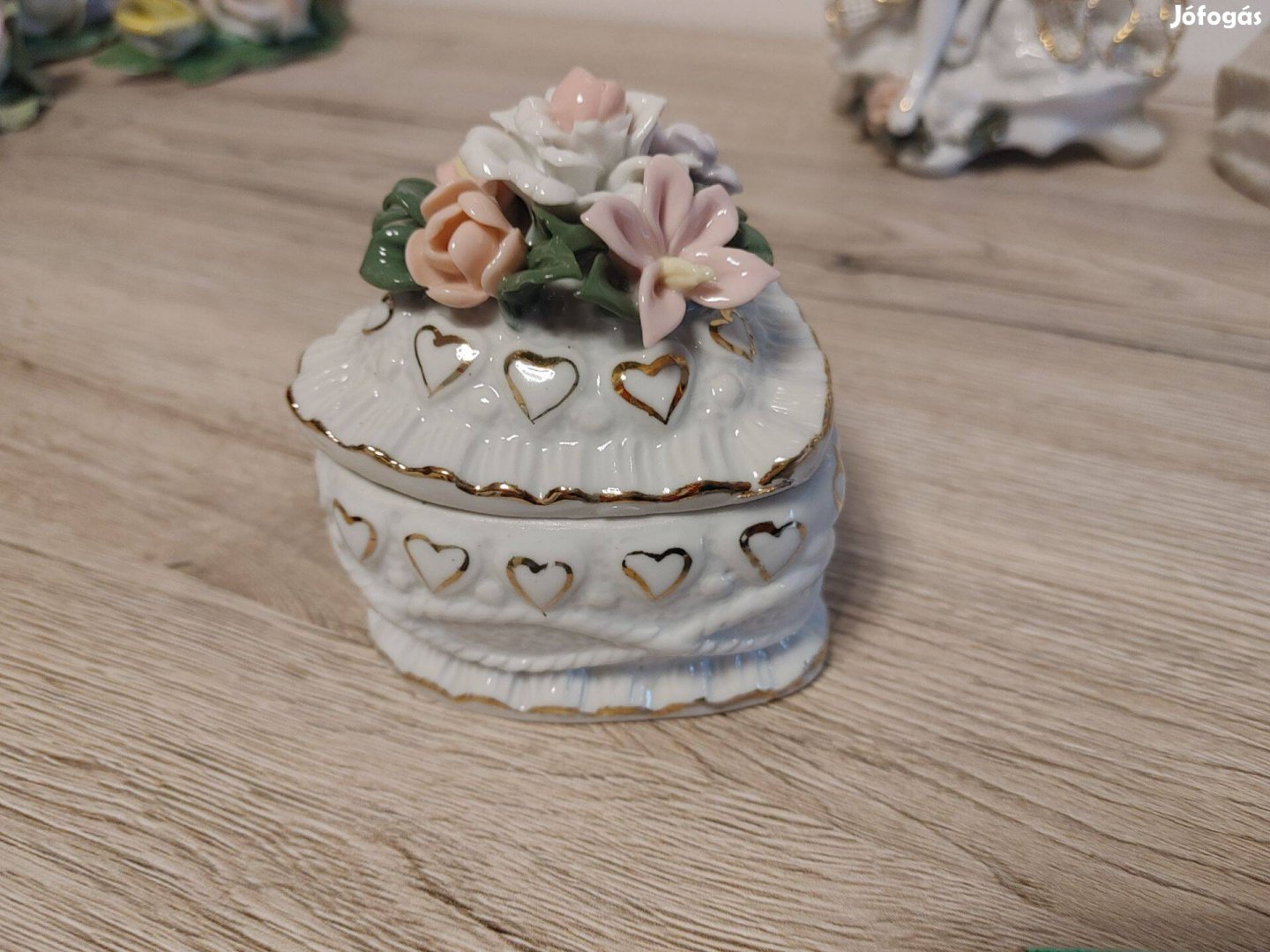 Porcelán fedeles virágos ékszertartó