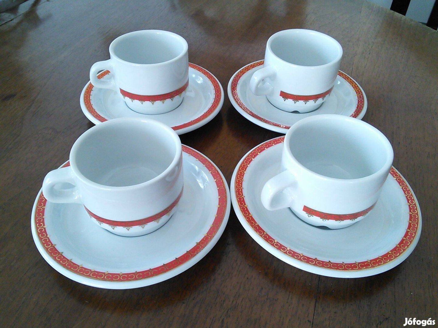 Piros - és aranyszínű 4 személyes Alföldi porcelán kávéscsésze készlet 1900 Ft ért eladó.