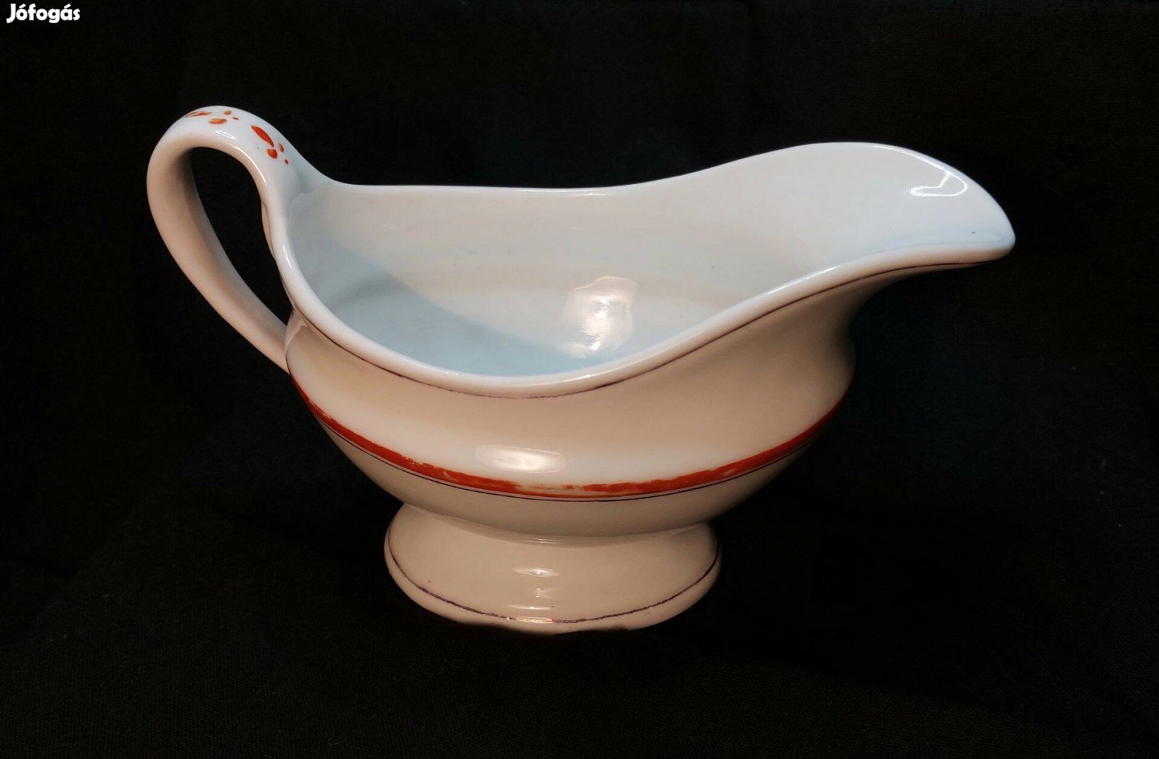 Porcelán szószos tál, piros csíkkal.