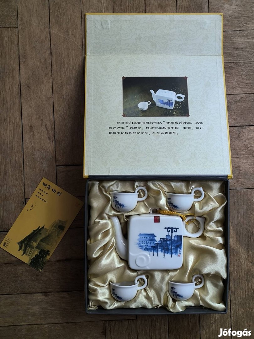 Nagyon szép, autentikus kínai porcelán, 4 személyes teáskészlet díszdobozában.