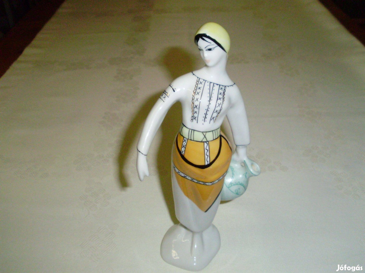 Sürgősen, olcsón eladó 21 cm magas, szép állapotú porcelán vízhordó lány népviseletben.