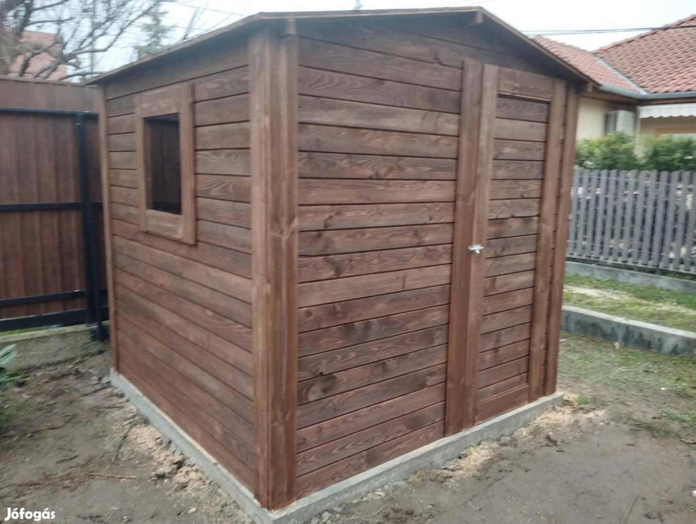 Elegáns megjelenésű, masszív kerti tároló borovi fenyő lambériából.