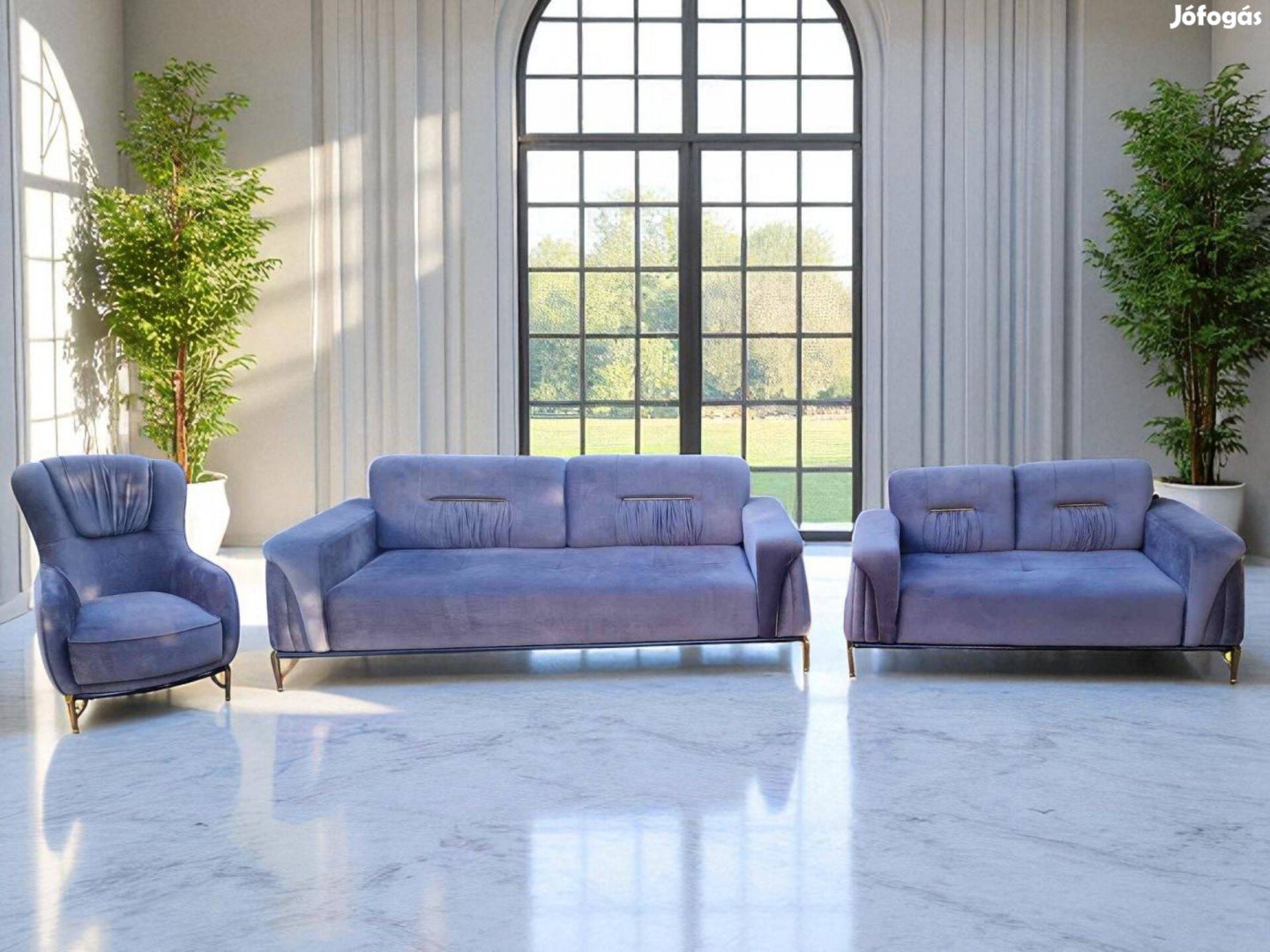 Prémium ezüstös kék színű bársony ülőgarnitúra szett