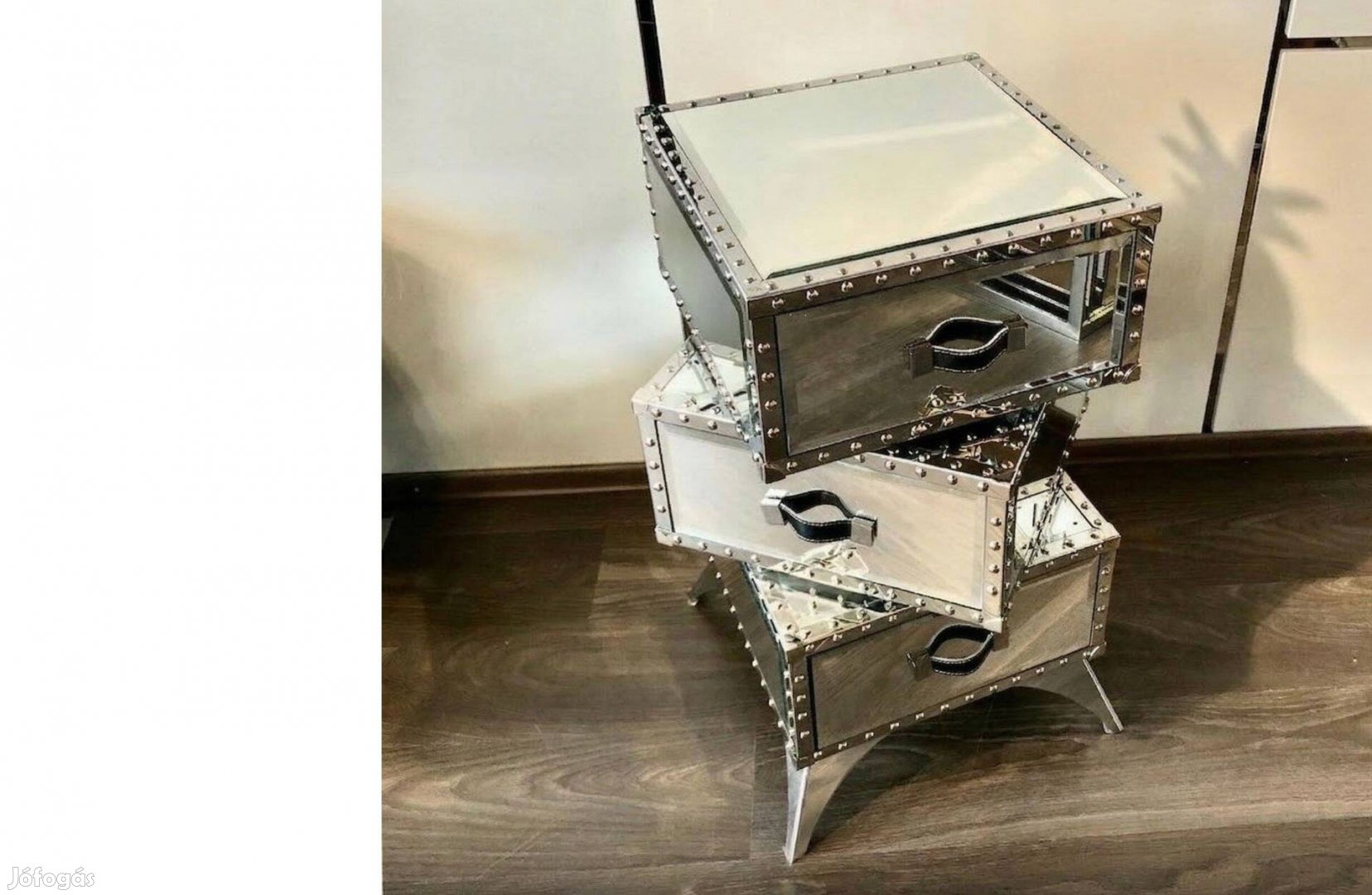 Ritka, minőségi, körbe tükrös kis szekrény, melynek elfogadhatók a fiók elemei.