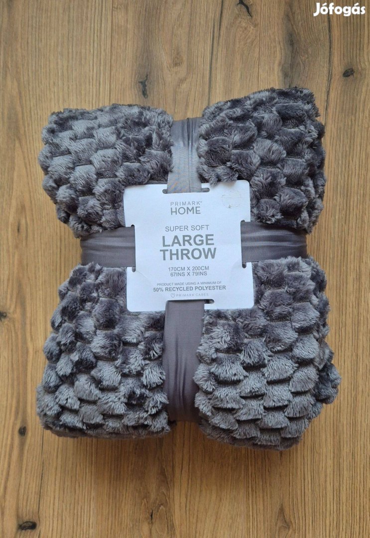 Primark nagy alakú takaró pokróc ágytakaró szürke új A01