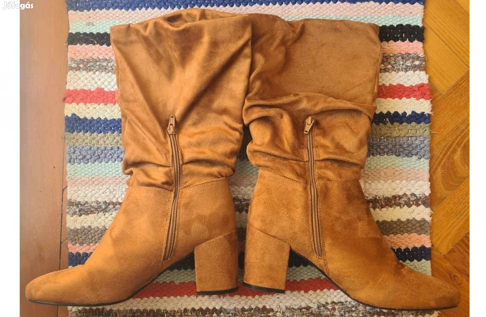 "Nem tudok benne menni" jeligére eladó egy kevésszer viselt, gyönyörű szép, velúr hatású, műbőr anyagú cappucino színű Promod márkájú, hosszúszárú csizma.