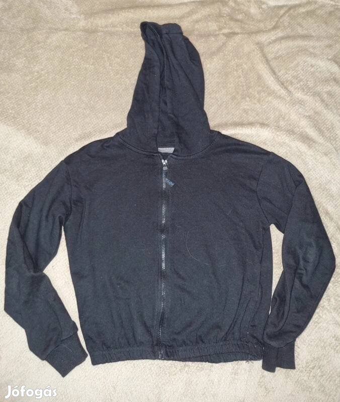 Fekete pulcsi 146-152-s rövid fazon alja gumis.