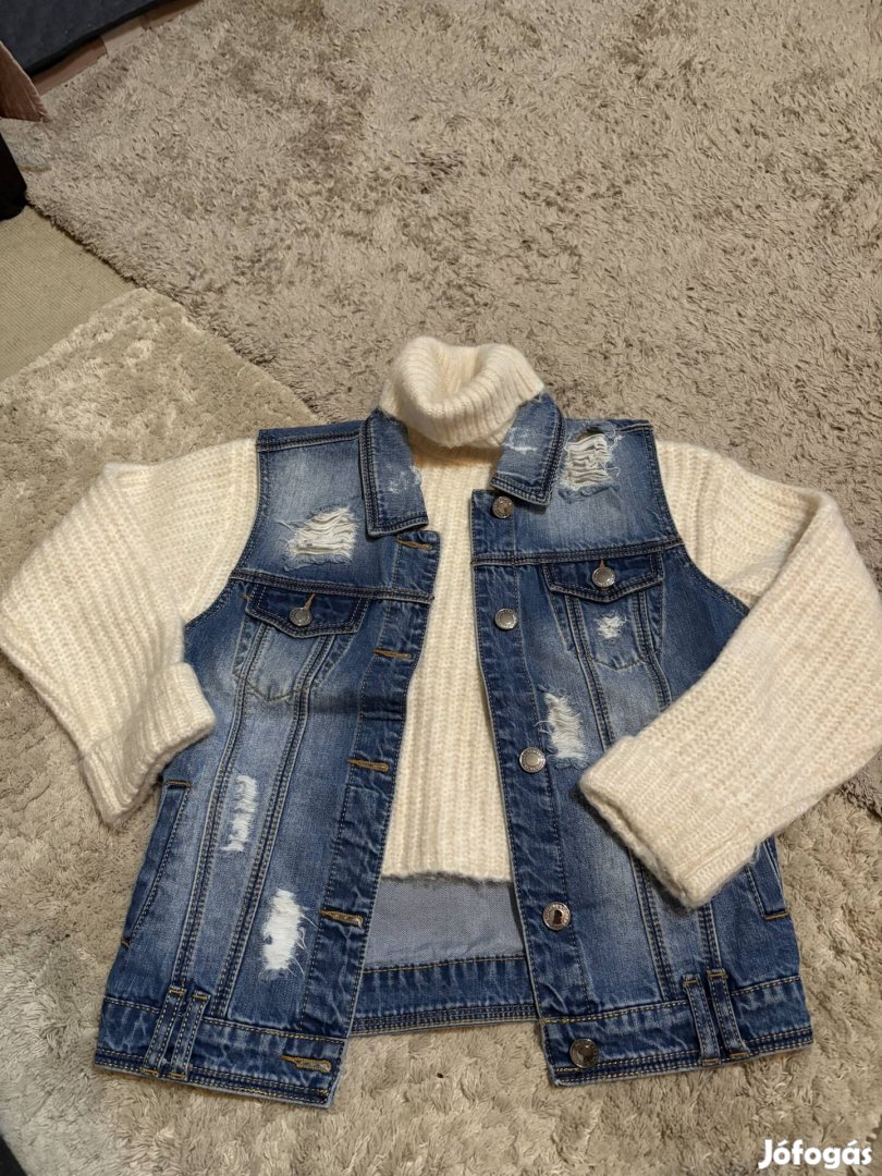 S méretű gyapjú garbó és kék farmer mellény eladó