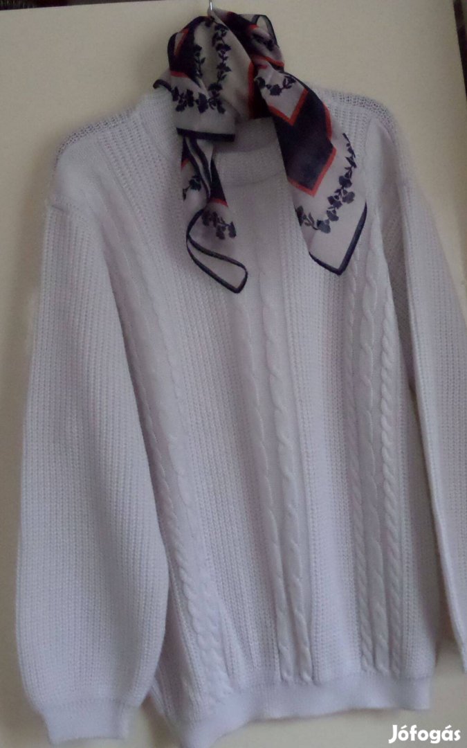 Eladó a képeken látható kellemesen puha, gépi kötésű, hosszú ujjú, kerek nyakkivágású kényelmes szabásvonalú pulóver. Kiváló viseletet biztosít nadrágokhoz, szoknyákhoz. Pontos méret: fotó szerinti
