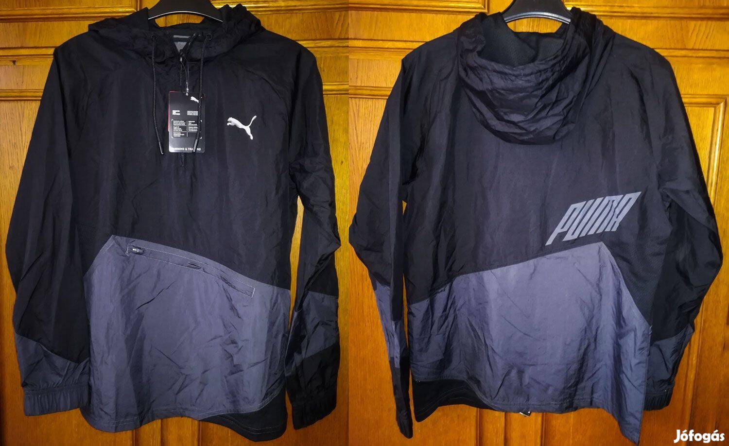 Puma kapucnis fekete-szürke eredeti futó dzseki (S)